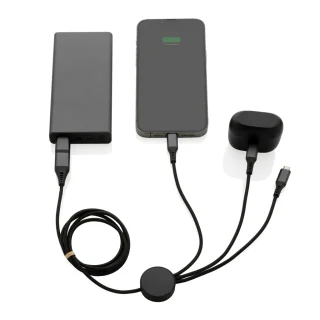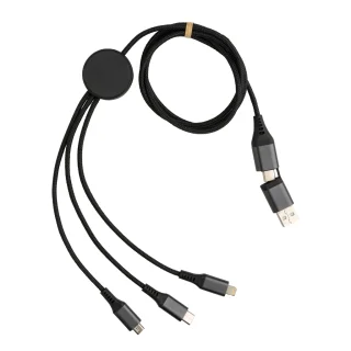 One cable, endless possibilities. The Terra Charge is a 120cm 6-in-1 charging cable crafted from RCS-certified recycled aluminum and TPE, combining versatility with a lower environmental footprint. Whether you're syncing or charging across devices, it keeps everything connected—sustainably. Branded with your logo, it becomes a sleek, everyday essential that powers your brand’s tech-forward and eco-conscious identity.