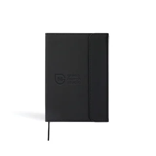 Sustainability meets sophistication. This A5 notebook combines GRS-certified paper with a sleek PU cover, creating a durable and stylish space for ideas, notes, and big-picture thinking. Whether you're in the office or on the move, it's built to support your day with eco-conscious elegance. Branded with your logo, it becomes a statement piece that turns everyday writing into a bold reflection of your brand values.